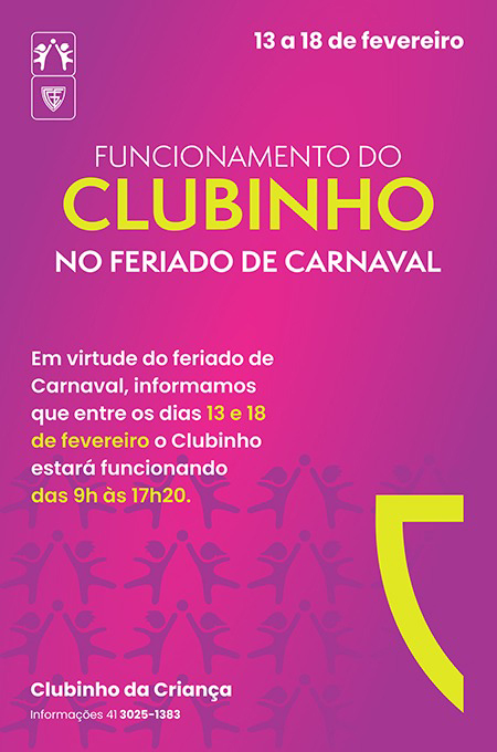 Clubinho estará com o horário reduzido neste feriado de Carnaval