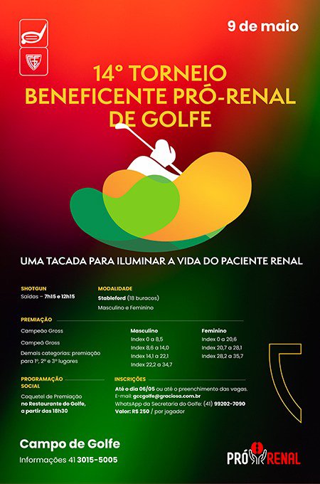 Participe da 14ª edição do Torneio Pró-Renal, no dia 9 de maio! Uma oportunidade de jogar por uma causa nobre e ainda brilhar em campo⛳🤍